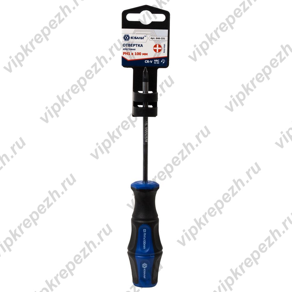 КОБАЛЬТ Отвертка PH1х100 мм двухкомпонентная ручка, Cr-V, подвес