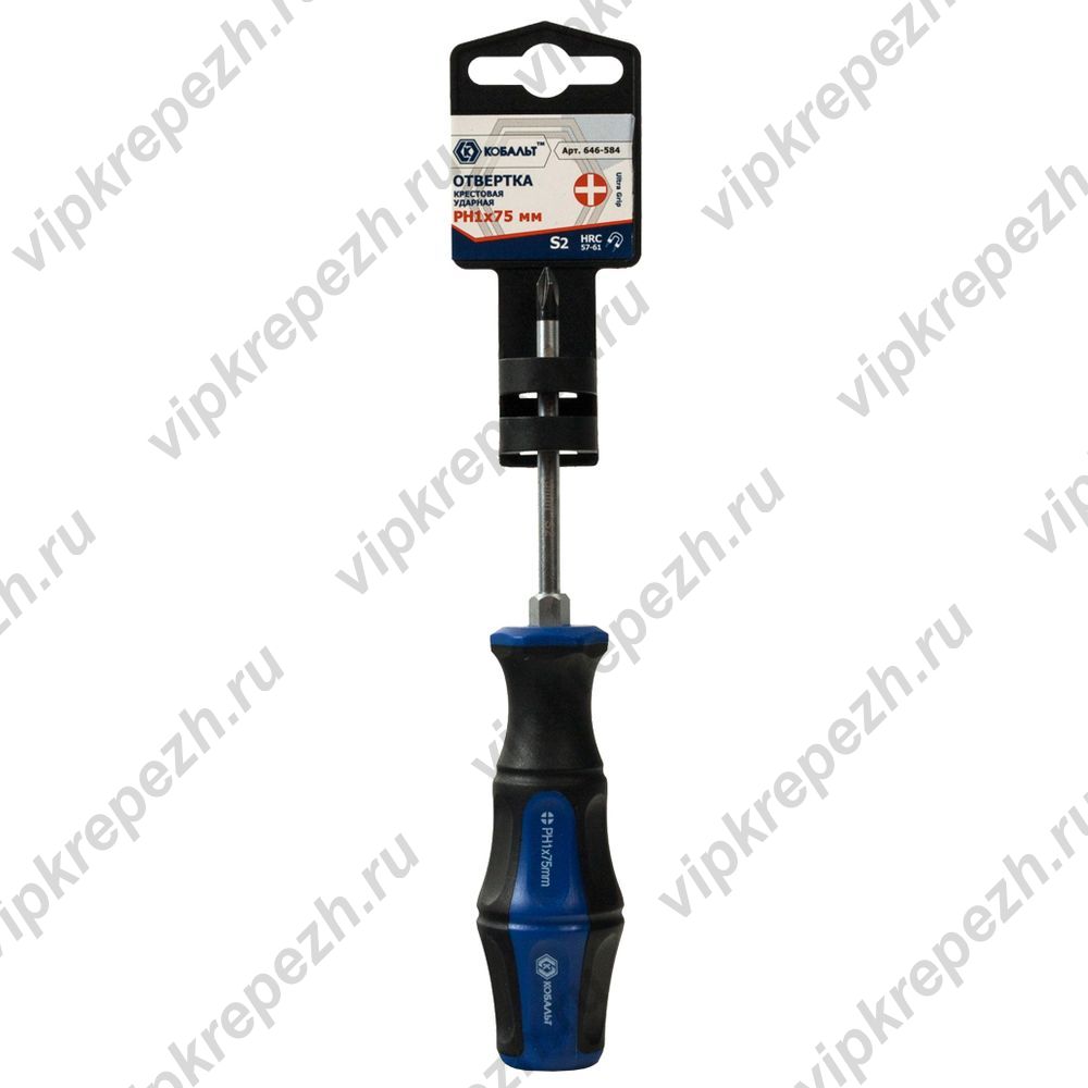 КОБАЛЬТ Отвертка ударная PH 1х75 мм двухкомпонентная ручка S2, подвес