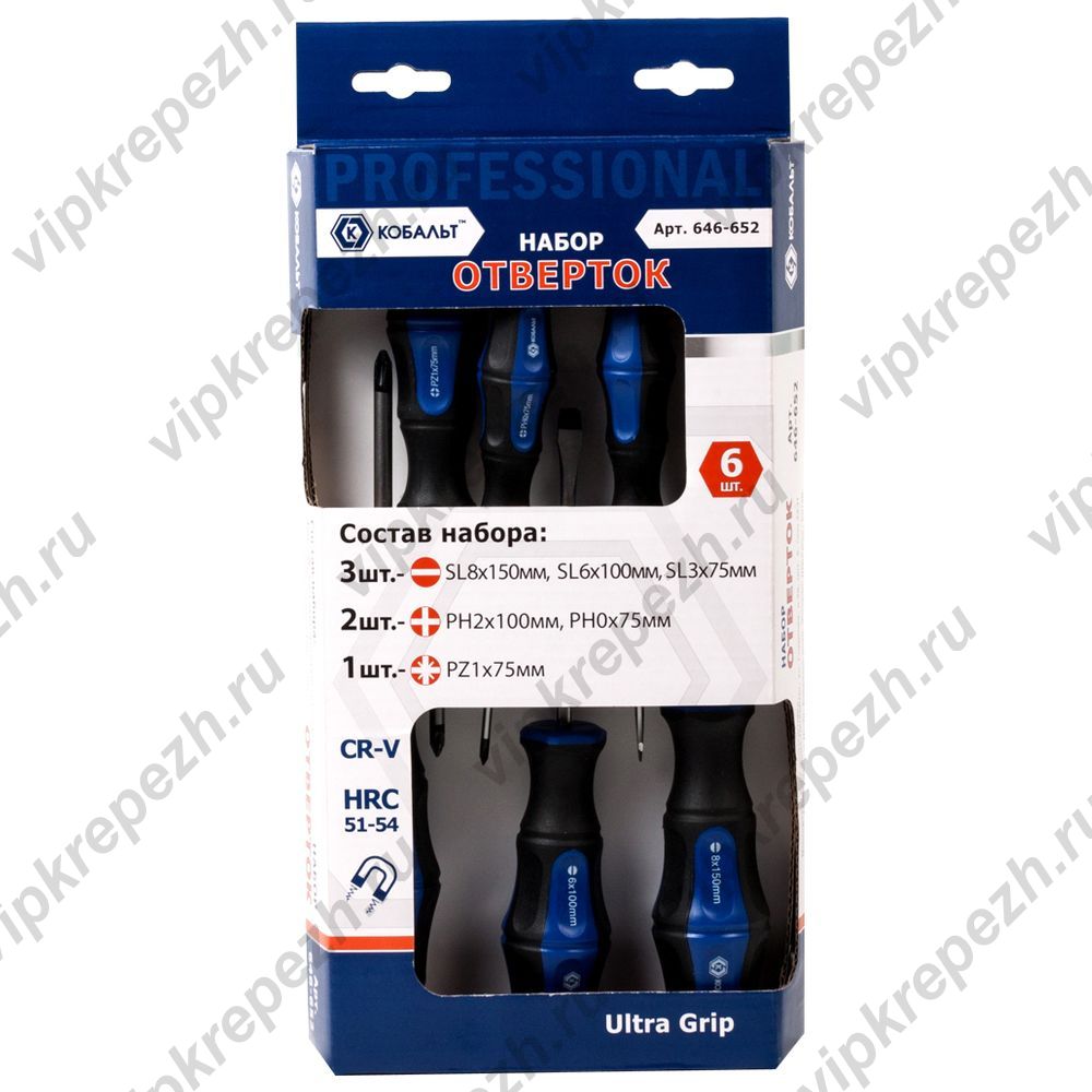КОБАЛЬТ Набор отверток Ultra Grip Cr-V (6), блистер