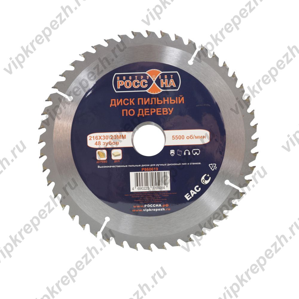 РОССНА Диск пильный по дереву 216х30х20 мм, 48 зубов