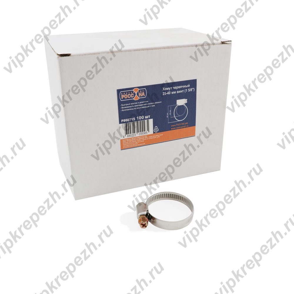 РОССНА Хомут червячный 25-40 мм (1 5х8") нерж. сталь, винт