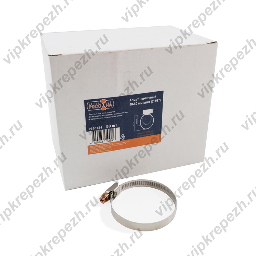 РОССНА Хомут червячный 40-60 мм (2 3х8") нерж. сталь, винт