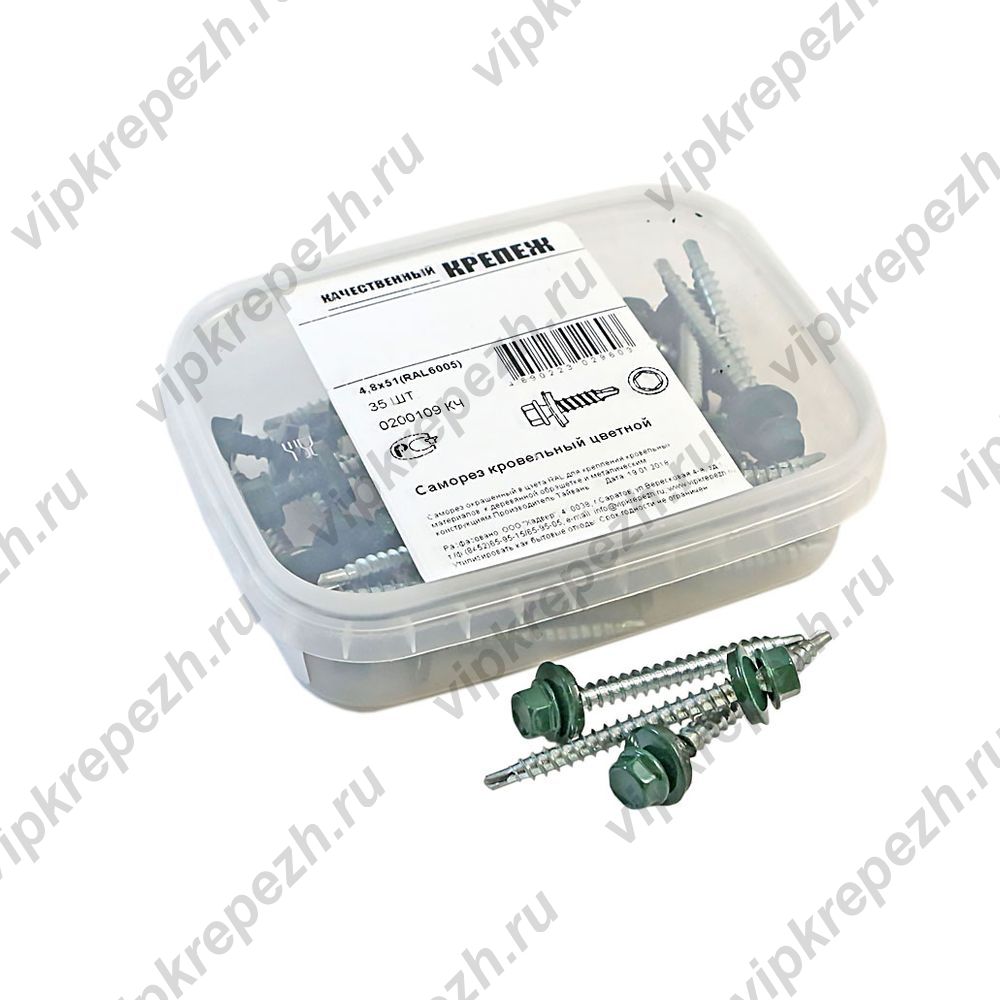 Саморез кровельный зеленый лист 4,8х51 (RAL 6002)(200)
