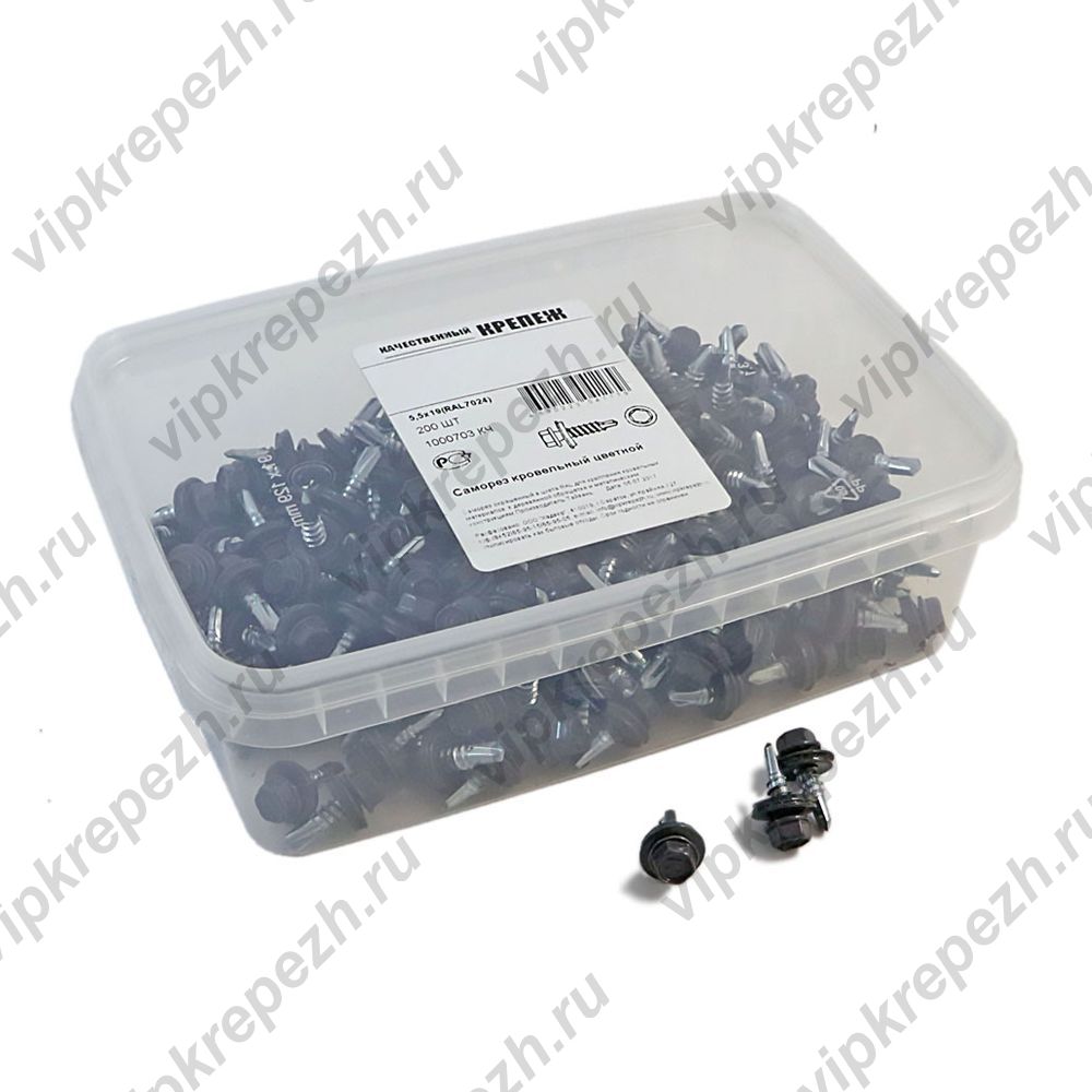 Саморез кровельный серый графит 5,5х19 (RAL 7024)(200)