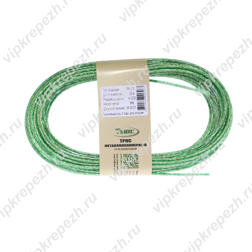 Трос металлополимерный ПР- 3,0 (моток 20м) ЗЕЛЕНЫЙ