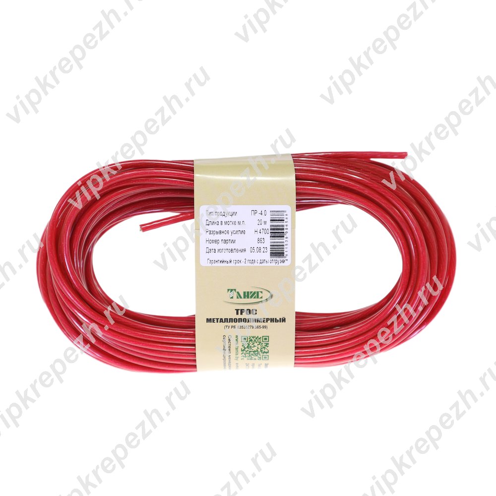Трос металлополимерный ПР- 4,0 (моток 20м) КРАСНЫЙ